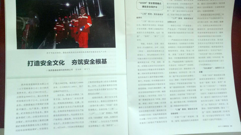 近日,《陕西安全》杂志对陕西鲁泰公司安全生产工作进行了详实报道,标志着集团公司煤矿托管服务模式和陕西鲁泰公司安全生产工作得到陕西省安全生产主管部门的高度认可。
