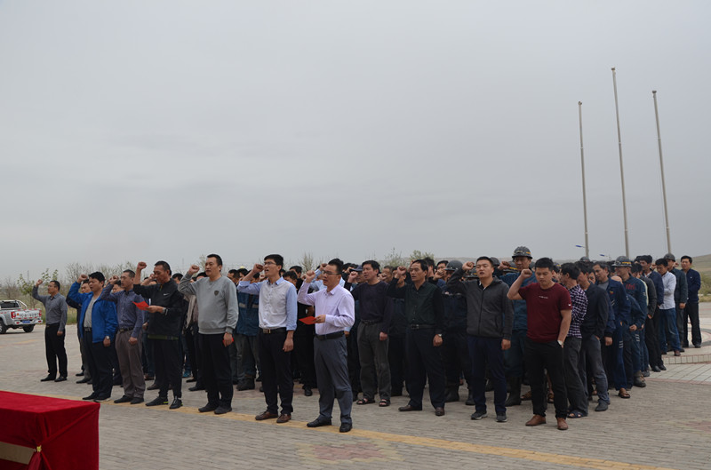 刘炳法宣布2018年度宁夏鲁泰"安全生产月"活动正式启动。副总经理赵令金带领全体参会人员进行安全宣誓总经理助理张峰主持启动仪式。