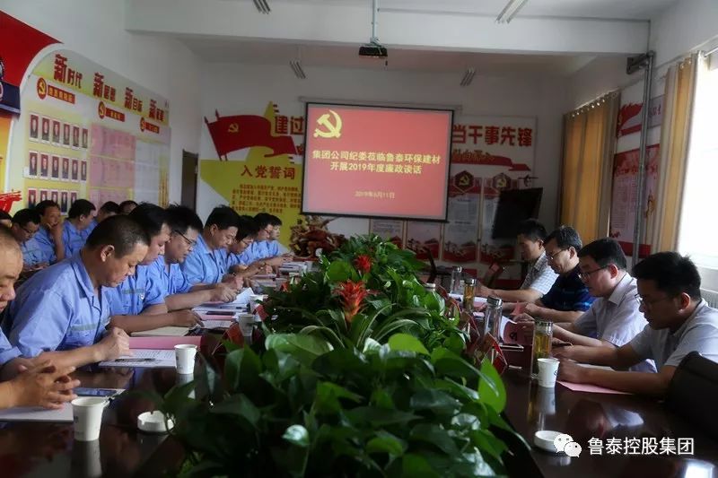 集体谈话会上,鹿洼煤矿党委书记、矿长贾广海,鲁泰化学党委书记、董事长张玉标,鲁泰热电党总支书记、总经理王允来,鲁泰环保建材党总支书记、总经理张文学分别代表各自企业汇报了党风廉政建设情况和“两个责任”落实情况及下一步工作部署。